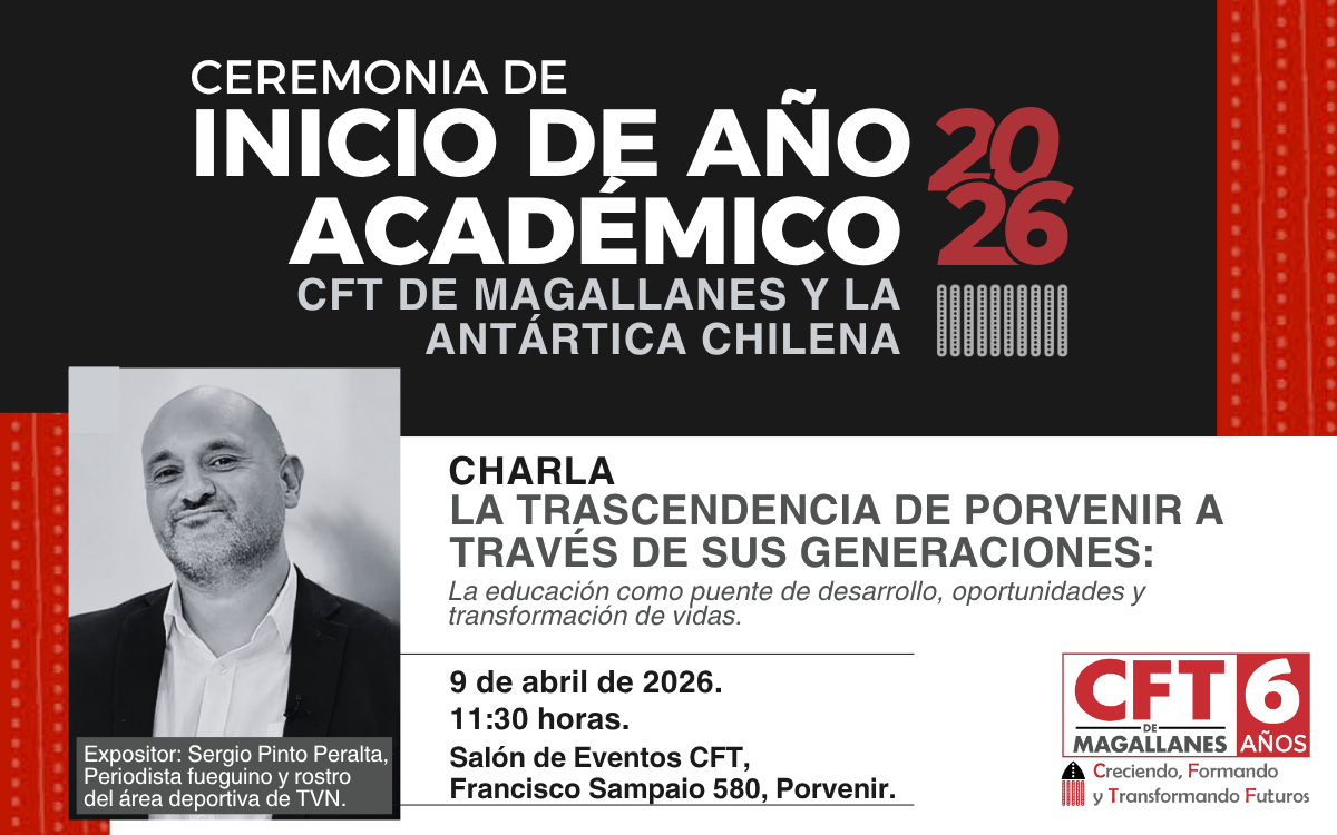 Inicio Banner Admisión 2026 11-09-2025Banner Admisión 2026 11-09-2025 (1)Banner Admisión 2026 11-09-2025 (6)CFT MATRICULA GRATIS DICIEMBRE NUESTRAS CARRERAS NOTICIAS Periodista fueguino dictará charla sobre educación y desarrollo en Ceremonia de Inicio de Año Académico 2026 Visita a terreno potenció aprendizajes sobre estándares de calidad y procesos productivos de la industria acuícola Primera reunión del año de delegados y delegadas estudiantiles del CFT de Magallanes Cargar más VIDEOS Ver más noticias ADMISIÓN NOTICIAS BENEFICIOS CONTACTO CONOCE NUESTRAS ACTIVIDADES En el @cftdemagallanes conmemoramos el #díadelaed Una enriquecedora experiencia académica fue la qu 📣Todos y todas invitadas a la Ceremonia de Inic Con gran presencia de docentes y estudiantes, se d ⏰️Aún estás a tiempo⏰️ Matrículate #aho 📢Buen día comunidad, con mucho agrado comparti Potenciar el desarrollo turístico de la región a 📢Atención docentes del @cftdemagallanes Todos La Directora del @hospitalporvenir , Altayra Fehrm 📢✨ ¡Capacítate y marca la diferencia! En e Cargar Más