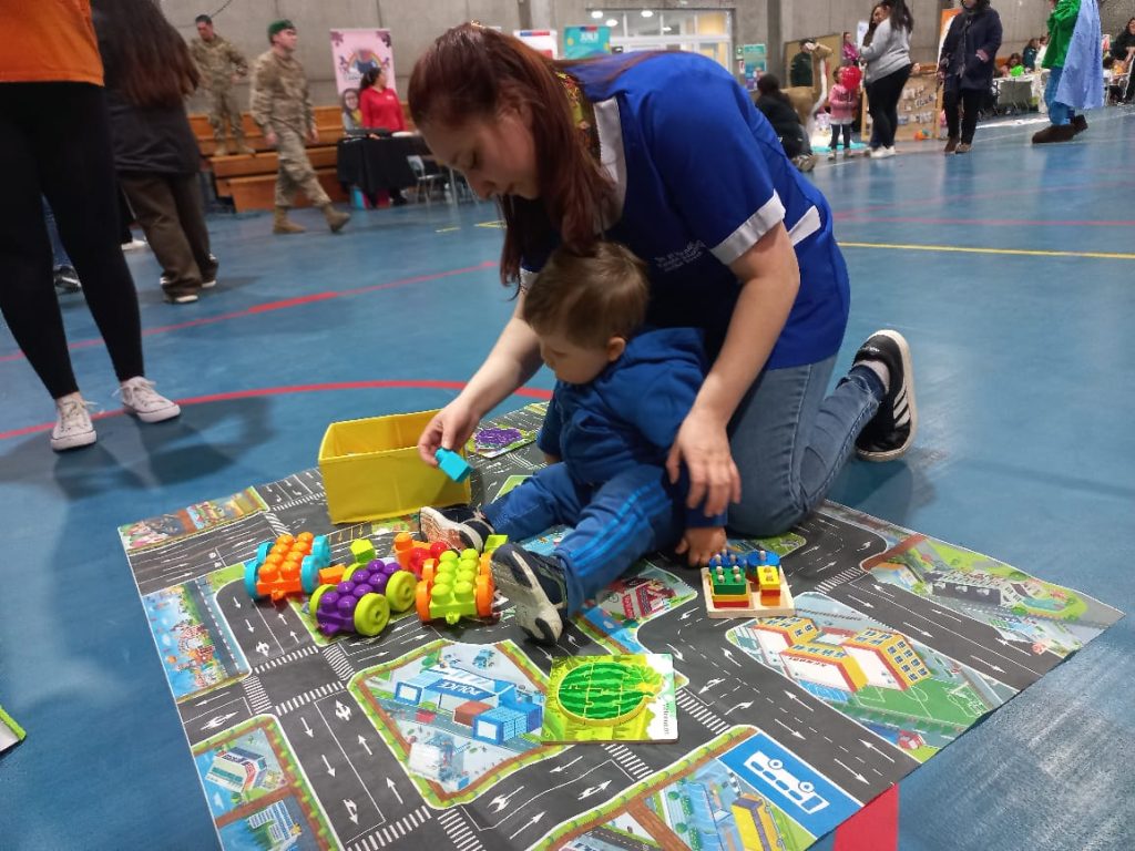 En este contexto, las futuras TNS en Párvulo mención Inclusión, junto a la coordinadora de esta carrera, Guadalupe Jaime, habilitaron un vistoso stand dotado de material didáctico que propició la participación de menores a través del juego, además de distintos elementos que permitieron interactuar y generar un impacto positivo con las familias que acudieron junto a sus hijos e hijas a esta actividad.